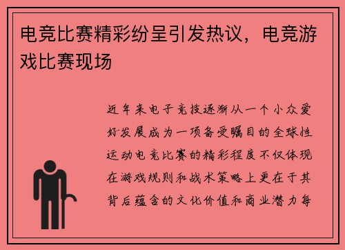 近年来,电子竞技逐渐从一个小众爱好发展成为一项备受瞩目的全球性运动。电竞比赛的精彩程度不仅体现在游戏规则和战术策略上,更在于其背后蕴含的文化价值和商业潜力。每一场比赛都像一场精心编排的戏剧,充满了悬念、激情和不可预测的转折。